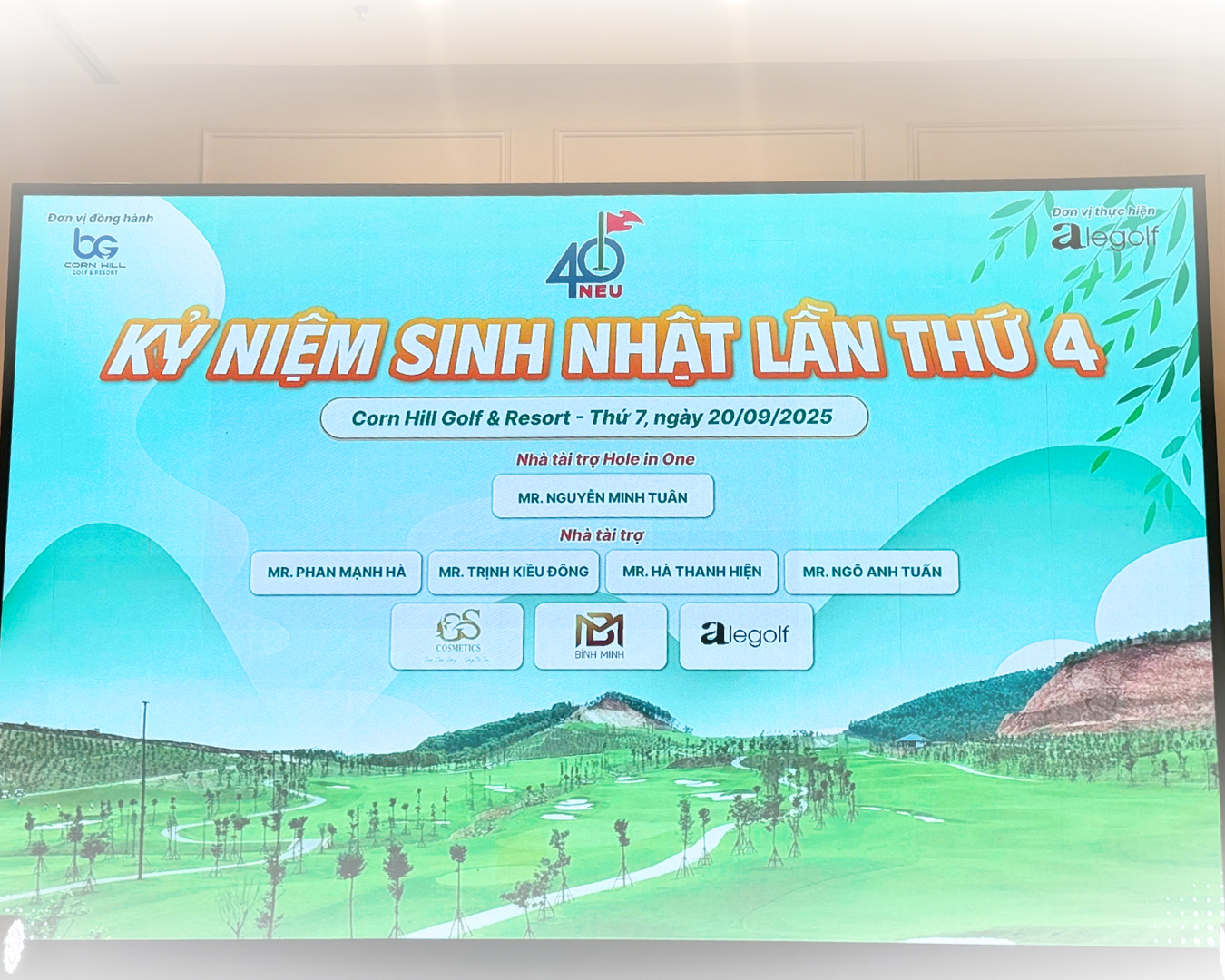 Ngày 20/09/2025, giải golf “Kỷ niệm 4 năm thành lập CLB Golf NEU K40” đã diễn ra tại Corn Hill Golf & Resort (Sân Golf Đồi Ngô) trong bầu không khí sôi động, chuyên nghiệp và giàu cảm xúc. Sự kiện đã thu hút đông đảo golfer tham gia, tạo nên một ngày thi đấu đáng nhớ với nhiều khoảnh khắc thăng hoa.